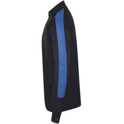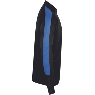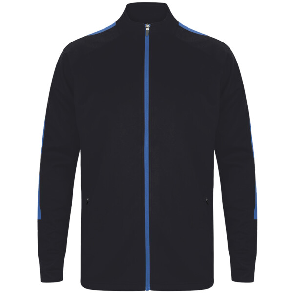 100% polyester interlock. Funnel neck. Full length contrast zip. Contrast outer sleeve panels. Two front zip pockets. Semi-automatic lock zip sliders on all zips. 1x1 ribbed cuffs. Open hem. Tear out label.