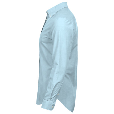 Garment washed. Shaped fit. Button down collar. Hang tag. Pearlised branded buttons. Back yoke with box pleat.