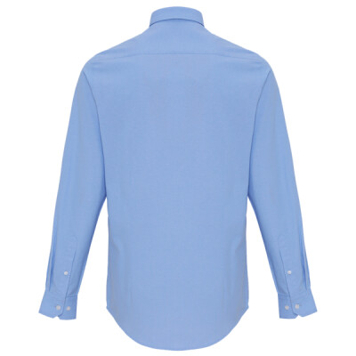 Crease resistant fabric. Easy care fabric. Classic button down collar. Contrast inner collar and cuffs. Back yoke. Back darts.