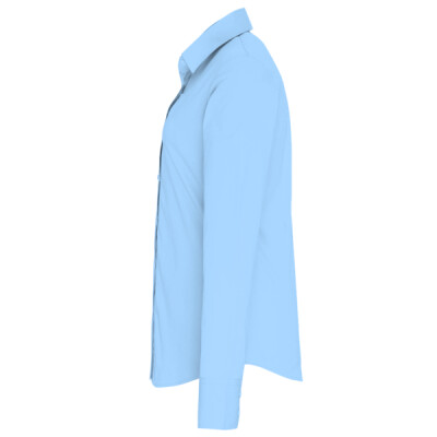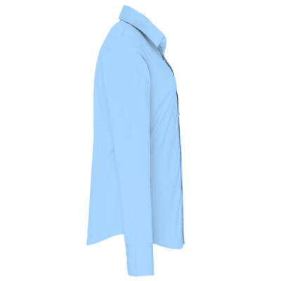 Soft feel stretch fabric. Fitted style. Stiffened cut away collar. Single button closure on collar stand. Grown on placket. Back yoke.