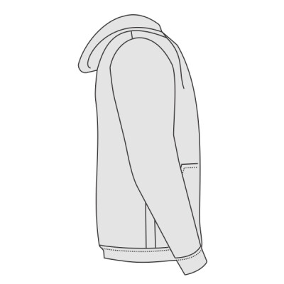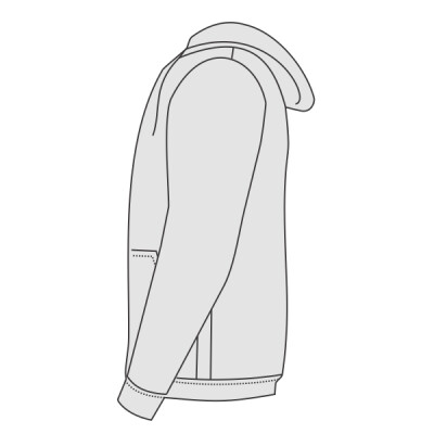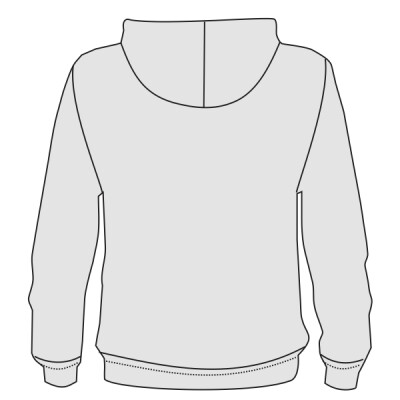 Soft cotton faced fabric. Brushed back fleece. Drop shoulder style. Two panel double fabric hood with flat lace drawcord. No front pocket to allow maximum print area. Ribbed cuffs and hem.