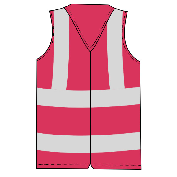 Conforms to EN 1150: 1999 (yellow and orange only). Tear release front closure. Two reflective bands around the body and one over each shoulder. Self colour bound edges.