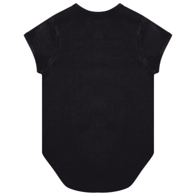 100% organic cotton. Single jersey. Envelope neckline. Self colour bound neckline, cuffs and leg openings. YKK bottom popper closure. Tag free.