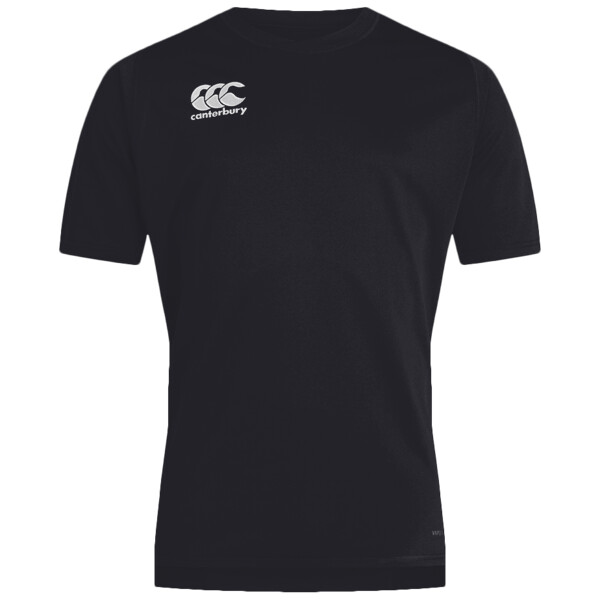 Vapodri wicking technology. Pro athletic fit. Loop zero neckline construction. Inset raglan seams. Dropped back hem. Branding on right chest and lower left hem.