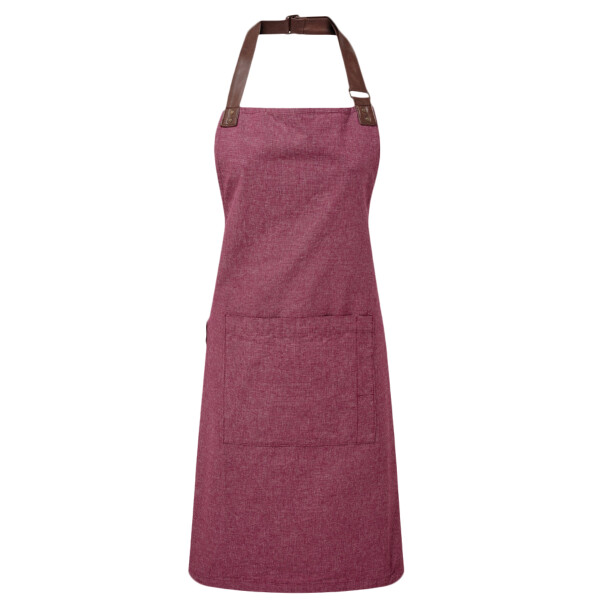 Faux leather adjustable neck tie with rivet detail. Tablet friendly front pocket with pen pocket. Faux leather cloth holder and side tabs with rivet detail. Self fabric ties with double D-ring. Width 72cm. Length 86cm.