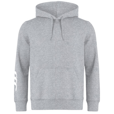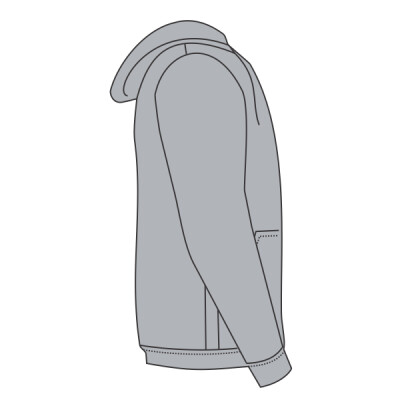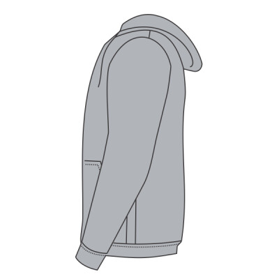 Drop shoulder style. Jersey lined hood with self colour drawcord. Forward facing shoulder seams. Front pouch pocket. Ribbed cuffs and hem. Branding on lower right sleeve.