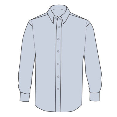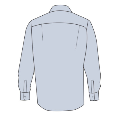 Tailored fit. Button down collar. Contrast inner collar and cuffs. Clear buttons. Back yoke with locker loop. Pleated back panel.
