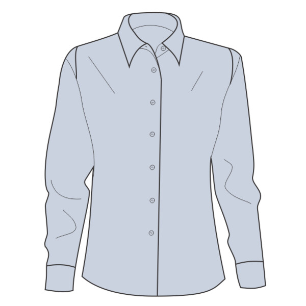 Tailored fit. Cut away collar. Contrast inner collar and cuffs. Clear buttons. Princess seams. Single button cuffs.