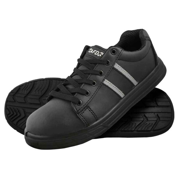 Breathable mesh lining. EN ISO 20345:2011. Unisex style. Steel toe cap (200 joules). SRC slip resistant. Grey reflective stripe. Leather upper. 1300g
