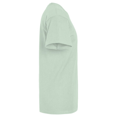 Organic or in-conversion to organic cotton. Ribbed collar. Taped neck. Side seams. Twin needle stitching. Unbranded size label at neckline.