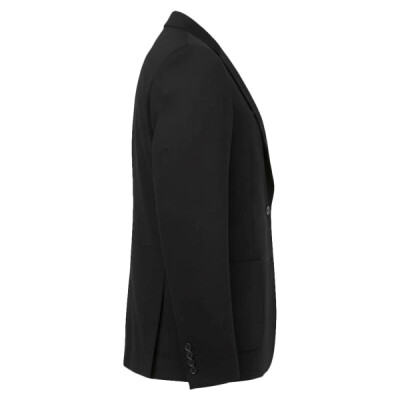 Half back lined. Slim fit. Two button single breasted. Left chest pocket. Two front patch pockets. Double vented back. Four button cuffs. Topstitch detail. Machine washable.
