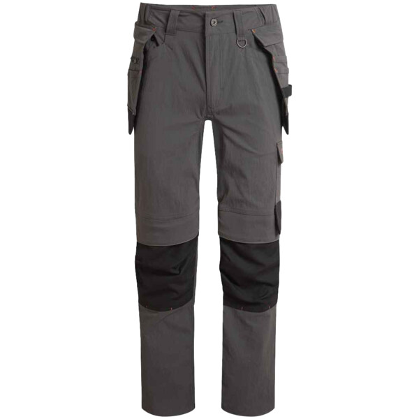 Cordura® panels. H2OShield DWR finish. Part elasticated shaped waistband with wide durable belt loops. YKK zip fly with shank button over. D-ring. Two side pockets. Concealed zip security pocket with RFID protection. Removable multi-pocket holsters. Two rear pockets, right with zip closure. Odour control patch. Reinforced gusset. Hammer loop. Left leg cargo pocket. Right leg yard stick pocket. Articulated knees with Cordura® reinforcement. Knee pad pockets. Cordura® reinforced heel. Reinforced stitching throughout. Reflective detail. Knee pads available CR780.