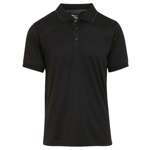 Outer layer made from at least 50% recycled fabric. Wicking and anti-bacterial properties. Contrast taped neck. Three contrast button placket. Contrast inner placket and tipping on collar and cuffs. Twin needle stitching. Cut out label.
