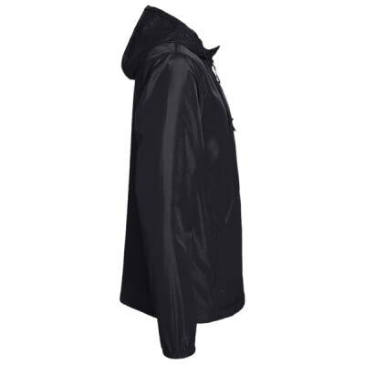 Outer layer made from at least 50% recycled fabric. Mechanical stretch polyester outer. Contrast warm polyester fleece backed. Showerproof and windproof. Grown on hood with adjustable toggles. Full length contrast zip with chin guard and inner zip guard. Inner pocket. Contrast right chest zip pockets. Two contrast front zip pockets. Open cuffs and hem. Cut out label.