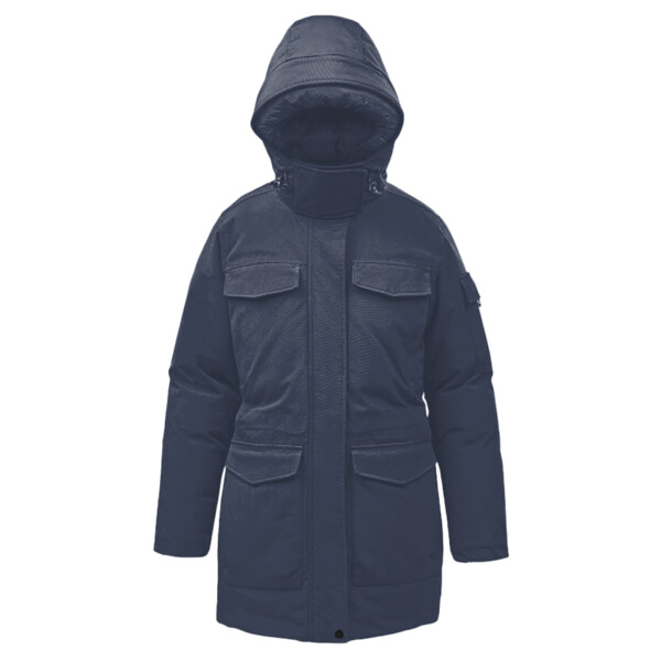 55% nylon/45% recycled nylon taslon oxford. Special order items are strictly non-returnable. Lead times may vary. Polyester lining. Thermolex™ high loft synthetic down insulation. HD 2-layer H2XTREME® waterproof 10000mm with fully sealed seams. Breathable 10000g and windproof. PFC-free DWR showerproof finish. Detachable, insulated storm hood with face shield. Full length two-way zip with chin guard and inner zip guard. Outer storm flap with press stud closure. Top and side access chest pockets with polar insulation. Left sleeve pocket. Articulated elbows. Inner chest zip pocket and mesh stash pockets. Inner adjustable waist. Inner powder skirt. Two dual access front pockets. Inner storm cuffs. Branded. Access for decoration.