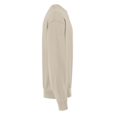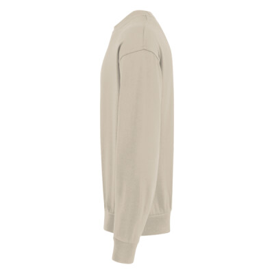 70% ringspun cotton/20% polyester/10% recycled polyester.* Cotton faced fabric. Brushed back fleece. Drop shoulder style. Oversized fit. Ribbed collar, cuffs and hem. Tear out label.