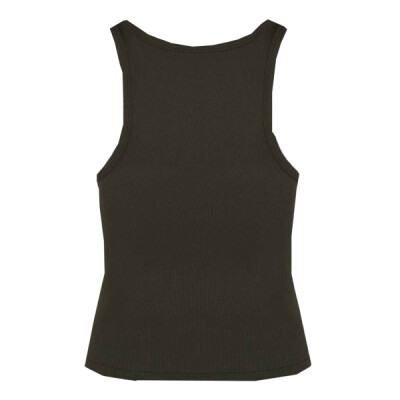 98% organic combed cotton/2% recycled elastane. Stretch fabric. Emzyme washed. Slim fit. 2x1 rib. Racer back style. Ribbed bound neckline and armholes. Single needle hem. Tag free.