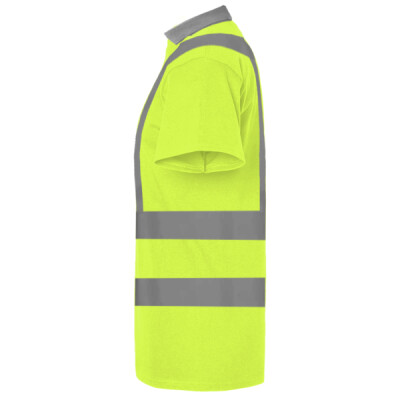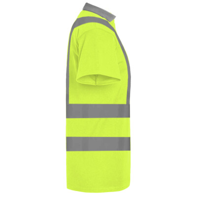 50% recycled polyester/50% polyester. Conforms to EN ISO 20471: 2013 + A1: 2016 class 2. RIS-3279-TOM (orange only). Soft touch, wicking micro mesh. UPF 40+ protection. Contrast ribbed collar. Taped neck. Two contrast button placket. Two reflective bands on front, back and one over each shoulder. Side vents. Twin needle sleeves and hem. Branded tab on lower left side seam.