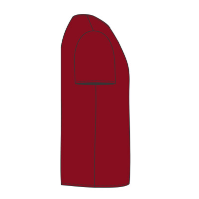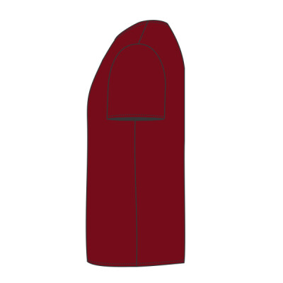 Ribbed collar. Taped neck and shoulders. Tubular body. Twin needle sleeves and hem. Tear out label.