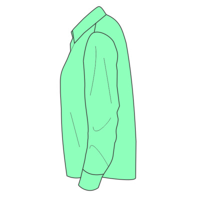 Easy care fabric. Fitted style with bust and back darts. Soft collar styling. Light blue and white pearlised buttons - rest have self colour. Double folded seams. Two button cuffs.