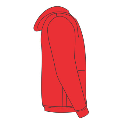 Brushed back fleece. Drop shoulder style. Three panel double fabric hood. Self colour round drawcord with metal tips. Front pouch pocket. Self fabric cuffs and hem.