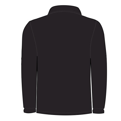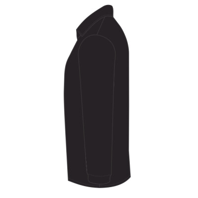 Stand up collar. Three button placket with horn effect buttons. 1x1 ribbed narrow cuffs. Side vents. Twin needle stitching.