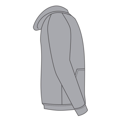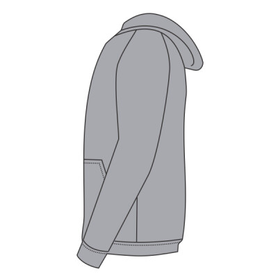 Raglan sleeves. Hood with self colour flat drawcord. Front pouch pocket. Cotton/Lycra® ribbed cuffs and hem. Twin needle stitching. Cut out label.