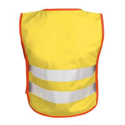Conforms to EN 1150: 1999. 89/686/EEC directive. High visibility knitted polyester. 3M™ reflective safety tape front and back. Elasticated side straps with tear release closure. Orange bias bound edge trim.