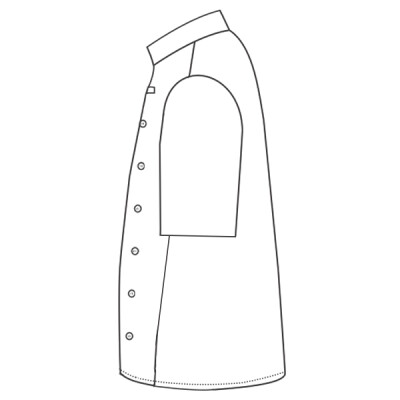 Unisex styling. Mandarin collar stand. Stainless steel stud closure. Industrial or domestic wash 60°C.