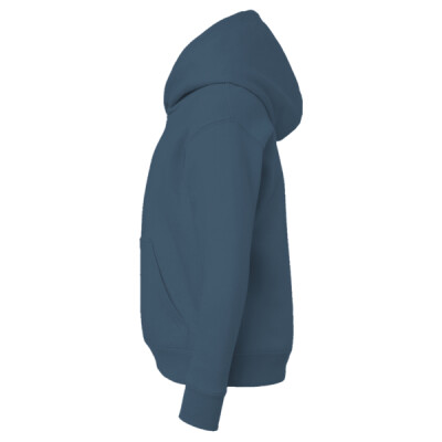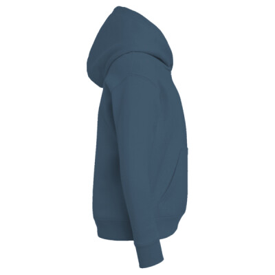 Soft cotton faced fabric. Brushed back fleece. Drop shoulder style. Double fabric hood. No drawcords to comply with EU regulations. Front pouch pocket.