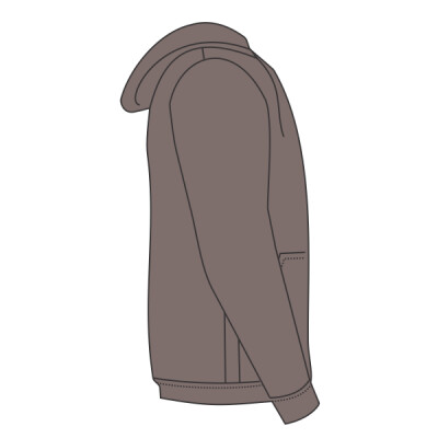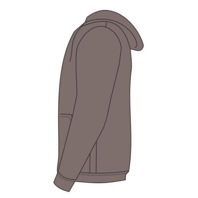 Soft cotton faced fabric. Brushed back fleece. Drop shoulder style. Three panel double fabric hood with self colour flat lace drawcord. V neck insert detail. Locker patch.