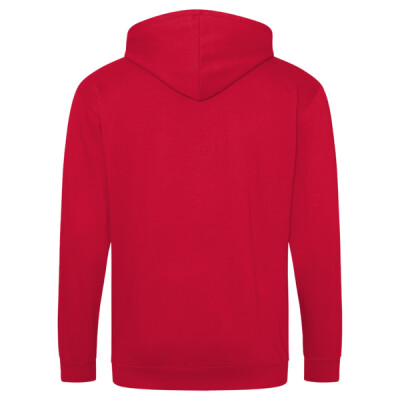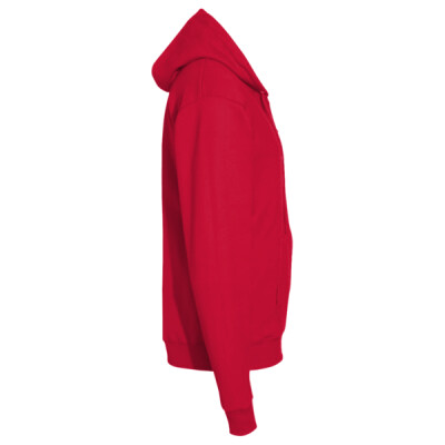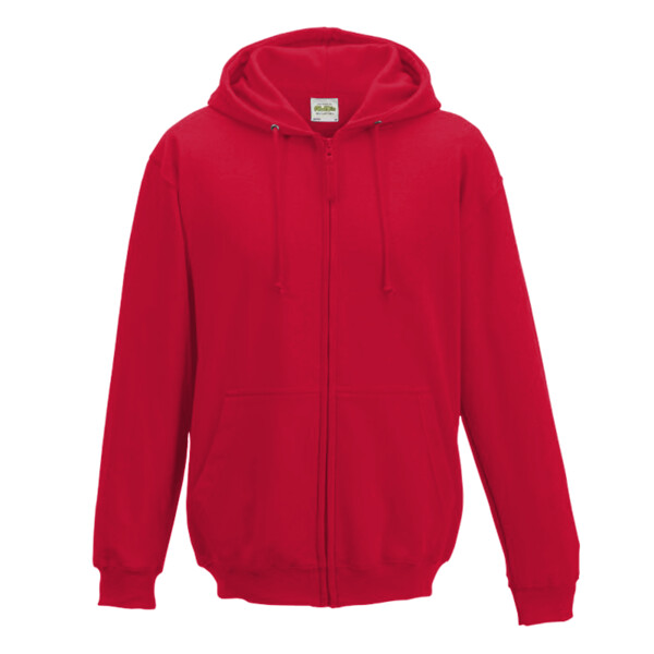 Soft cotton faced fabric. Brushed back fleece. Drop shoulder style. Double fabric hood with self colour drawcord. Full length covered plastic zip. Front pouch pockets.