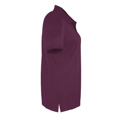 Easy care moisture wicking fabric. Ribbed collar and cuffs. Taped neck. Three self colour button placket. Panelled detail for a more fitted shape. Side vents.
