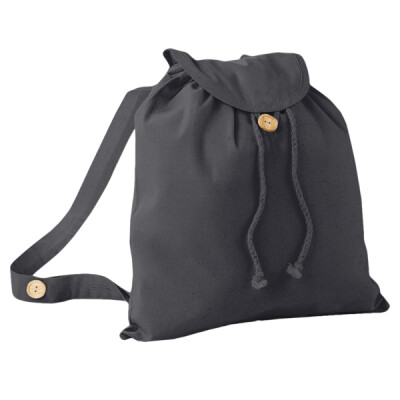 Grab handle. Adjustable shoulder straps. Drawcord closure. Wooden buttons. Capacity 8 litres.