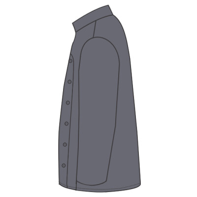 Easy care fabric. 10 button wrap over closure. High quality long life resin buttons. Left sleeve pen pocket. Open cuffs. Industrial laundry 85°C.