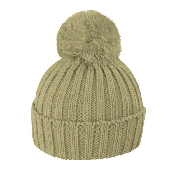 Windproof. Chunky knit. Longer length. Foldable hem. Self colour pom pom.